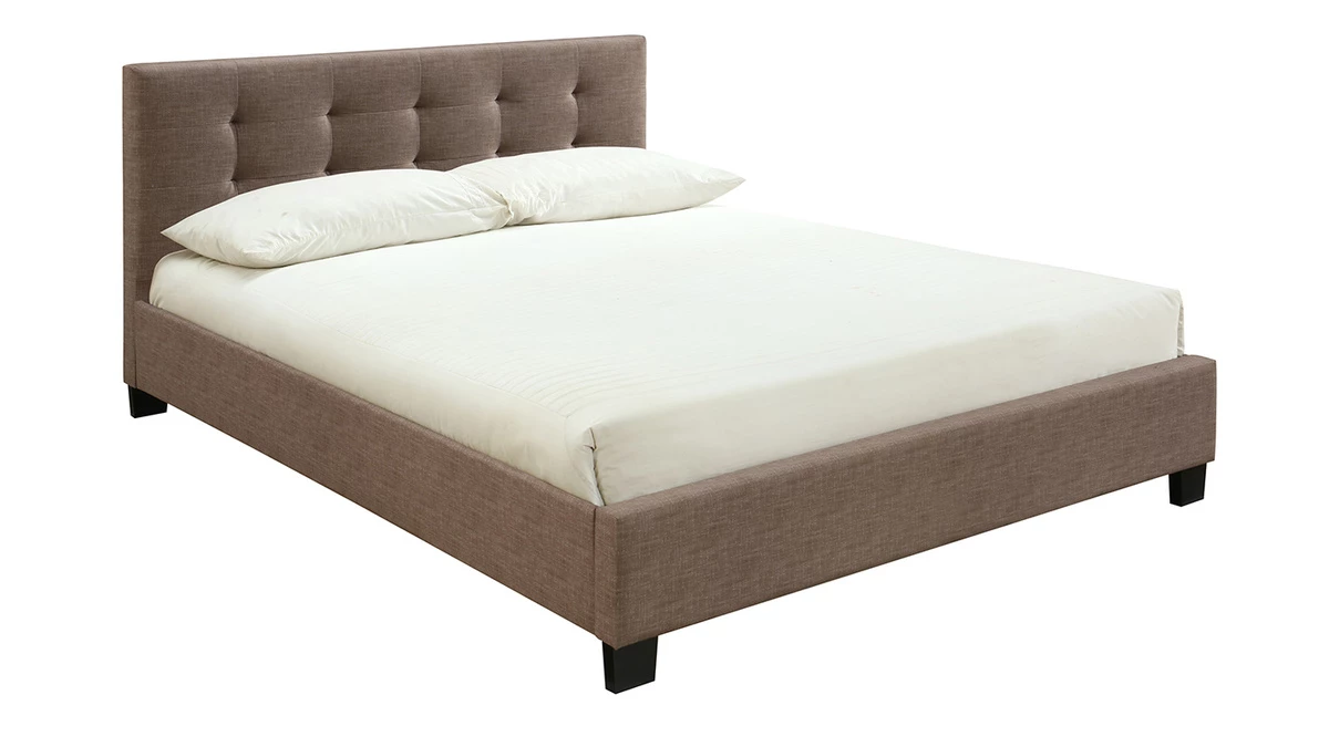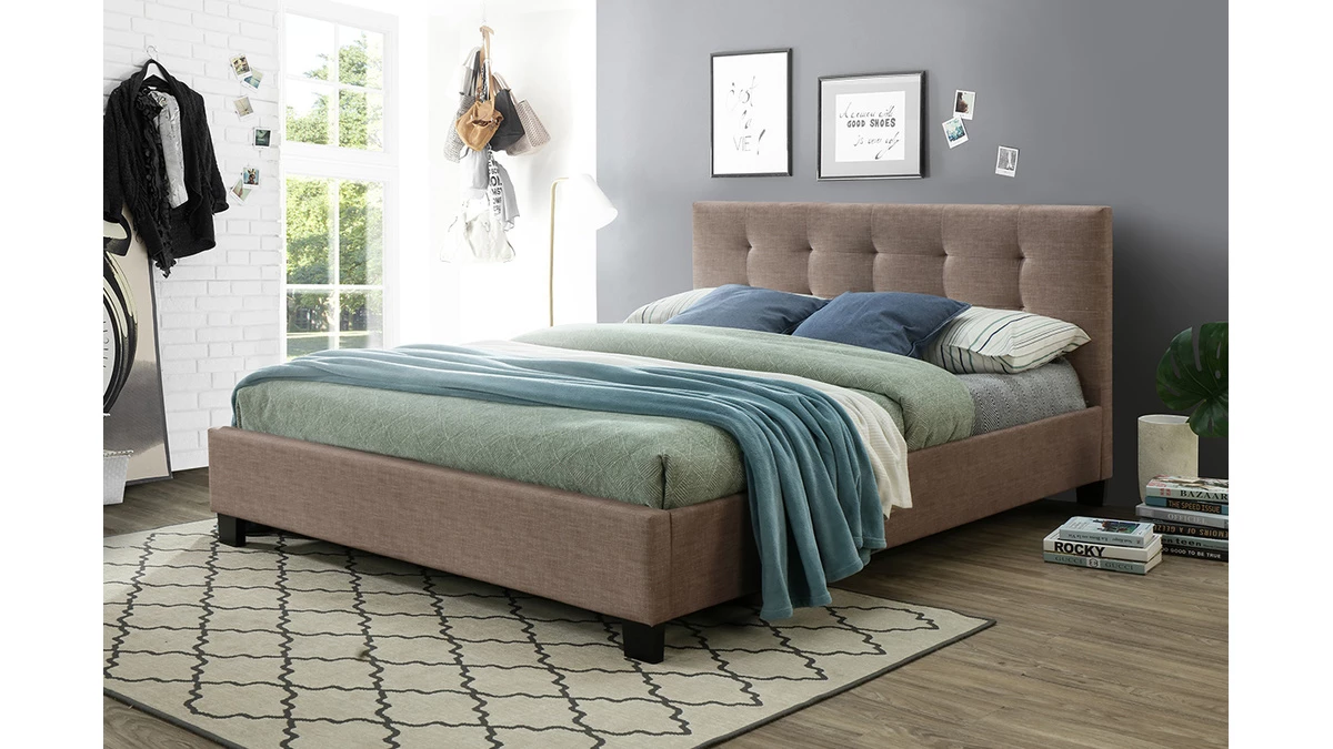 Ce lit queen size habillé d‘un revêtement tissu camel (100% polyester) est un vrai cocon agréable et raffiné. Confortable dossier, sommier à lattes en bois arquées, pour assurer une distribution uniforme du poids du corps sur toute la surface sans provoquer d’affaissement, ce lit double a été pensé pour votre confort !