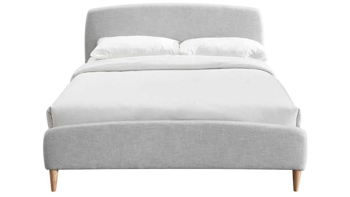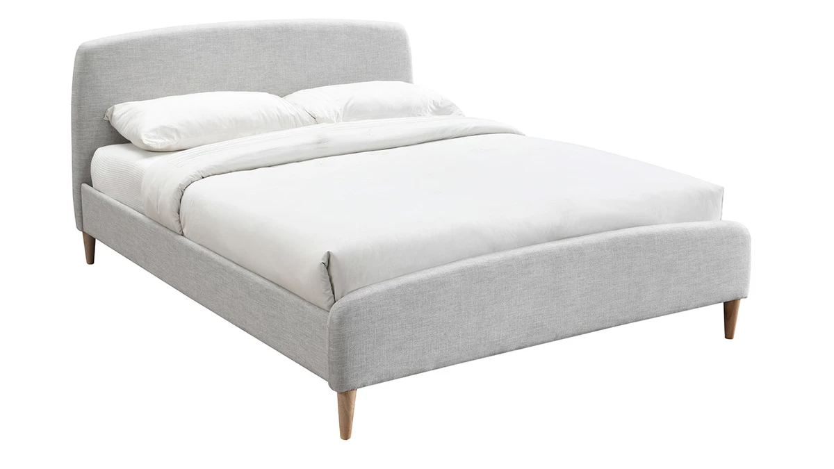 Parfaitement dessiné, ce lit queen size tire son inspiration des pays nordiques. Ses courbes légères et aérées offrent un design unique très subtil. Ce lit gris clair au revêtement tissu (100% polyester) se fondra parfaitement dans le décor d’une chambre avec une décoration plutôt classique, scandinave ou contemporaine. Ses lignes arrondies lui donnent un style tout en douceur et son piètement en hévéa massif un aspect chaleureux. Confortable et joli, ce lit double trouvera sa place dans une chambre d’adulte et scellera la promesse de nuits paisibles et enchantées…