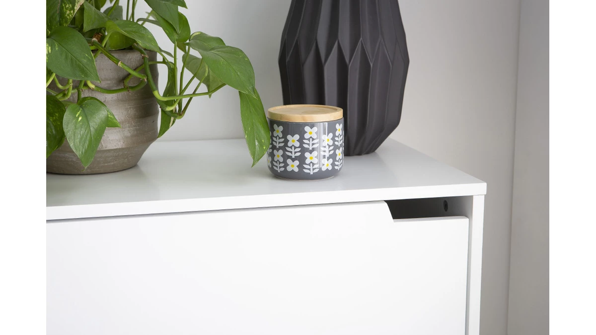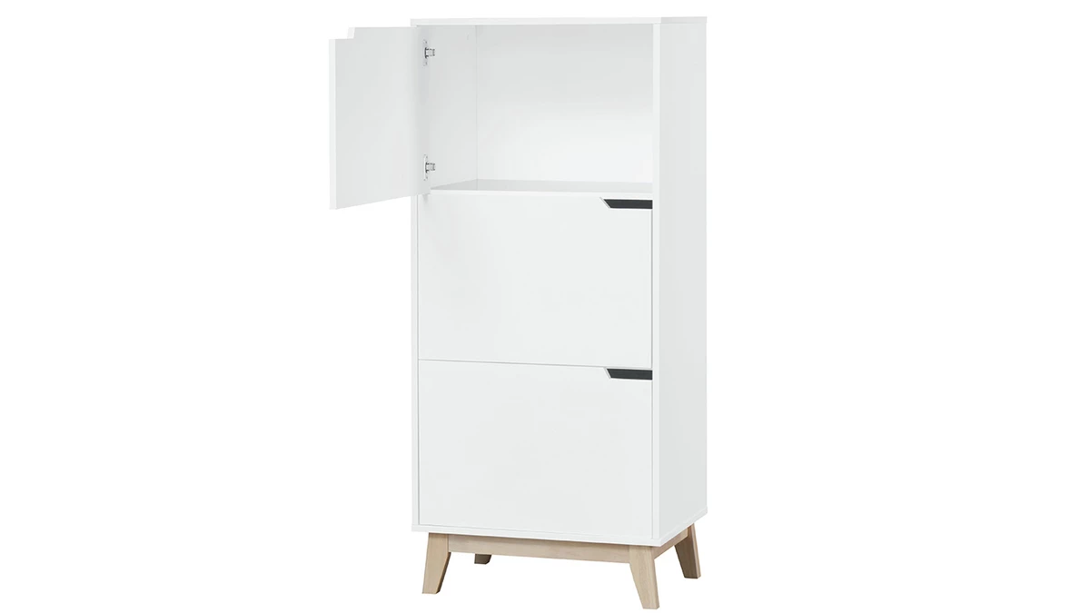 Grâce à son coloris blanc et ses jolis pieds en bois clair, ce joli meuble blanc apportera une touche tendance à la décoration de votre intérieur. Que vous ayez adopté le style scandinave ou que vous souhaitiez suivre la tendance bohème chic, ce meuble répondra à toutes vos envies déco. Son petit plus ? Comme il n’est pas très haut, on peut profiter du dessus pour donner encore plus de style à la pièce en posant quelques cadres et une belle lampe design.