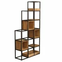 Etagère Séparateur D’espace En Bois Manguier Massif Et Métal Noir L90cm FINLEY