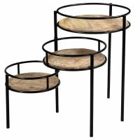 Support De Plantes Modulable En Bois Manguier Massif Et Métal Noir L50 Cm THREE
