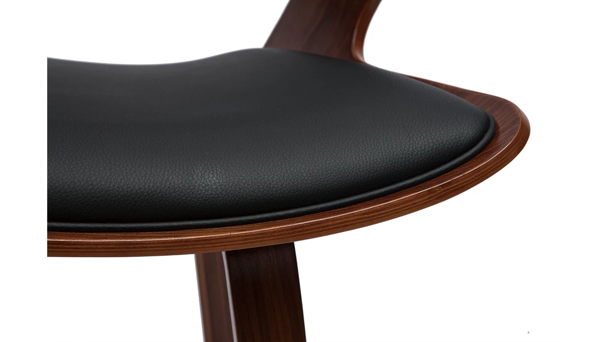 Entre son revêtement en polyuréthane noir, sa structure en bois foncé et son repose-pieds en métal noir, il se veut aussi design que chaleureux. Cette association de matières ainsi que ses lignes courbées font de lui un objet déco dans l’air du temps qui fera tout son effet dans votre intérieur.