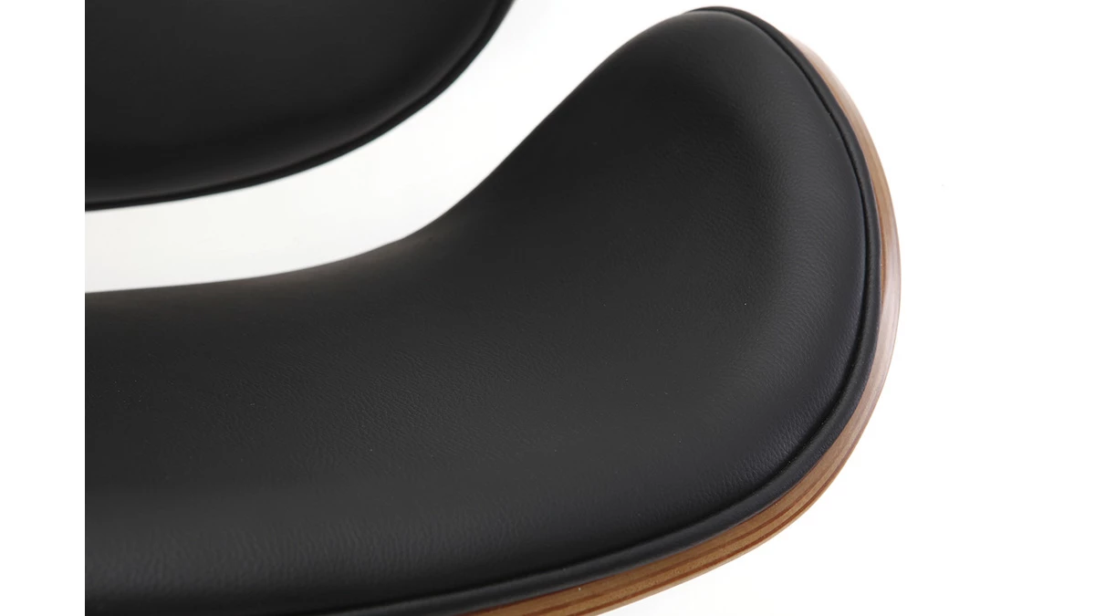Allure extrêment enveloppante pour le tabouret de bar WALNUT ! Son assise et son dossier en polyuréthane noir, très faciles d’entretien, contrastent agréablement avec sa structure en bois cintré finition noyer qui lui assure un look vintage très tendance.