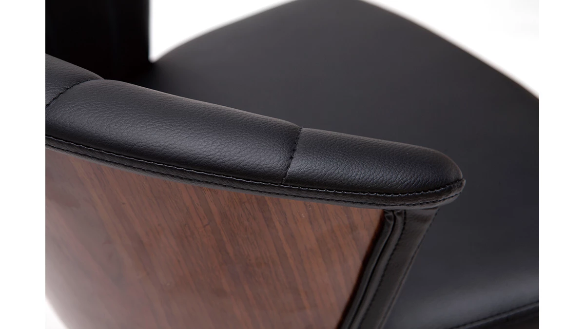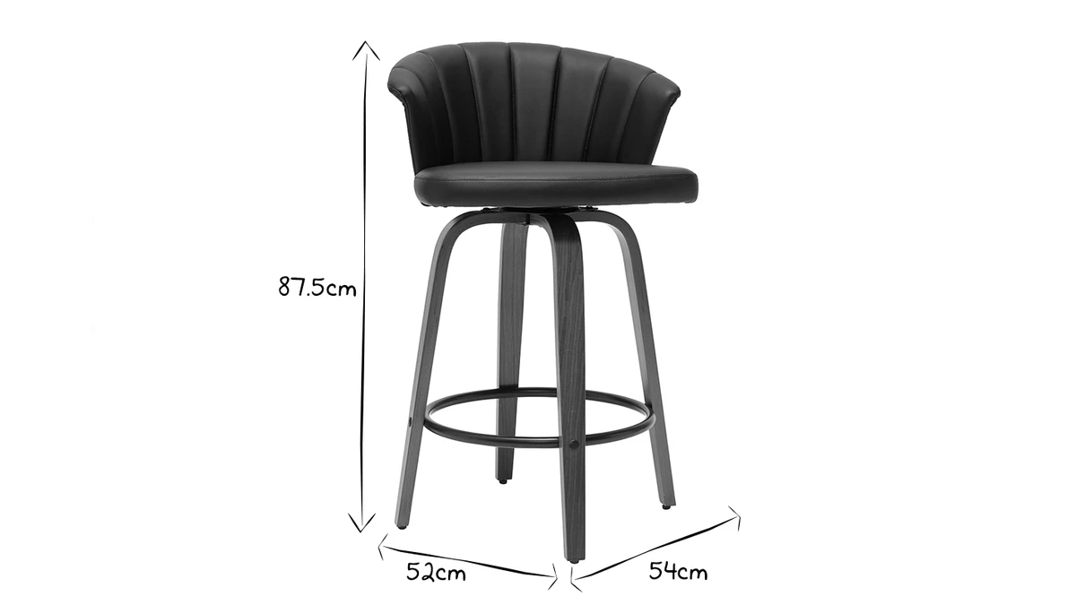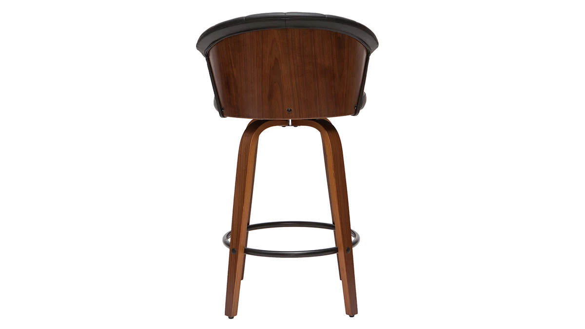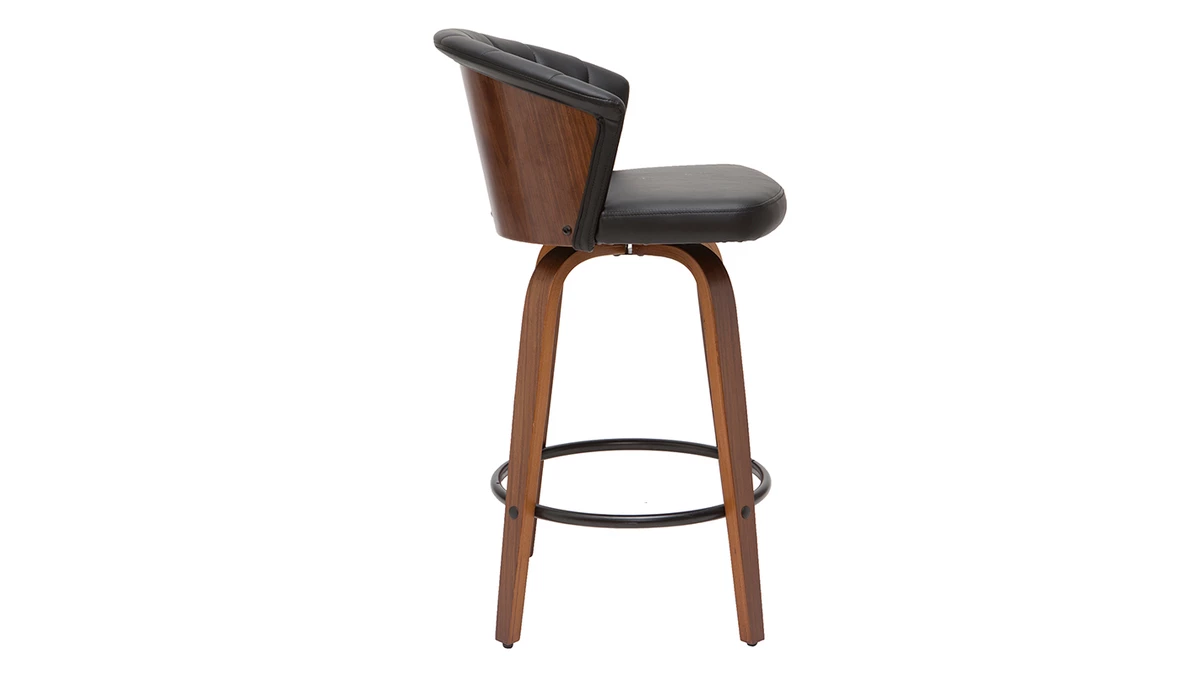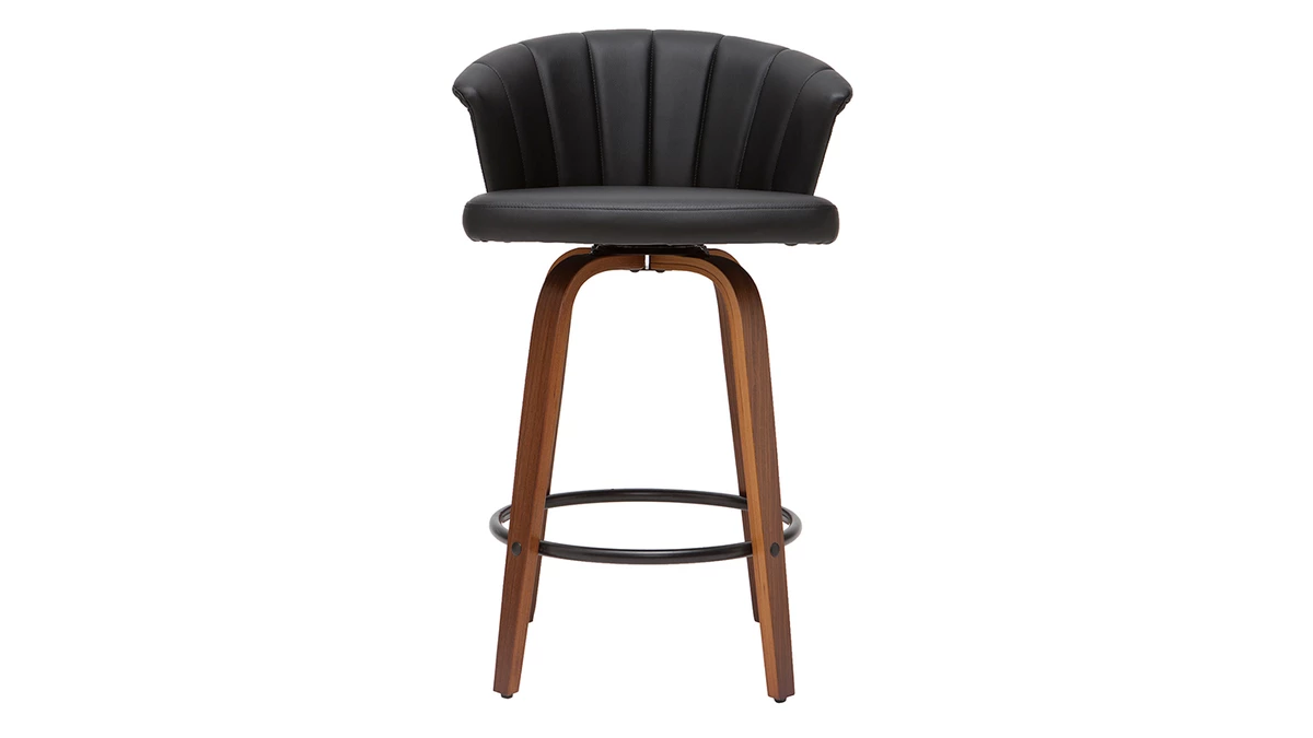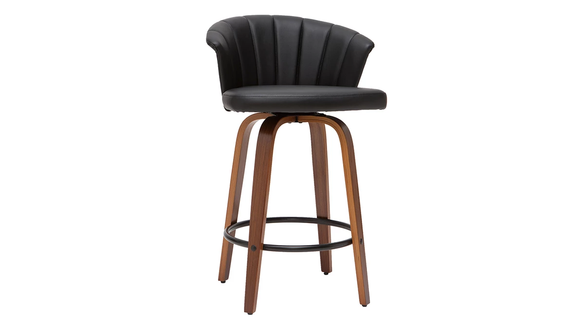 Avec ses courbes enveloppantes, ce tabouret de bar présente un joli travail sur la matière. L’élégante structure en contreplaqué courbé dessine des lignes fluides et élégantes. On aime particulièrement la finition authentique et naturelle offerte par le placage en noyer. L’assise a quant-à-elle été travaillée avec un revêtement capitonné noir sophistiqué et très facile d’entretien.