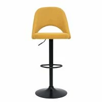 Tabourets De Bar Relevables Tissu Effet Velours Texturé Jaune Et Métal Noir (lot De 2) COSETTE