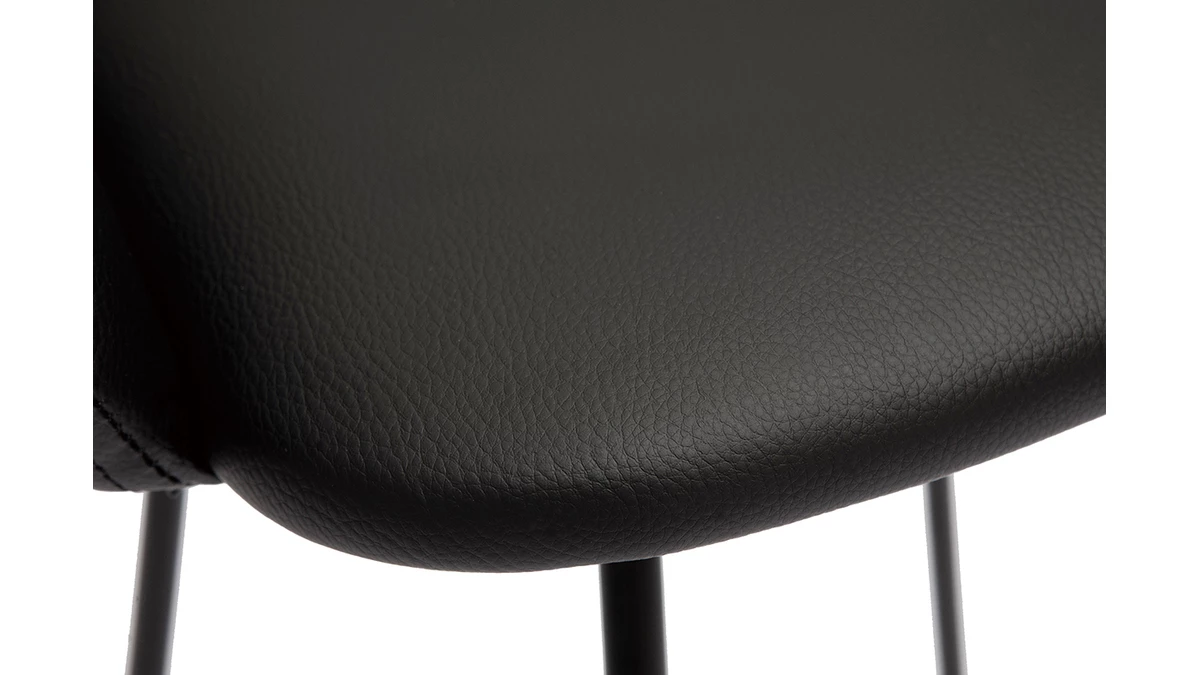 Campées sur un piètement luge aérien, ces assises légères allient confort et modernité. Elles se parent d’un revêtement noir (100% polyuréthane) dont l’élégance intemporelle se conjugue parfaitement à l’esprit moderniste de la structure en métal noir.