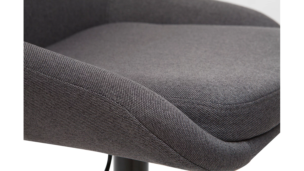 En plus d’être parfaitement fonctionnels, les tabourets de bar HOLO offrent un vrai confort d’assise grâce à leur coque enveloppante. L’assise et le dossier sont rembourrés (densité mousse 24 kg/m3) et entièrement recouverts d’un magnifique tissu gris (100% polyester) ultra doux et très résistant. Le dossier haut (H38 cm) et le repose-pied intégré renforcent un peu plus l’idée de confort.