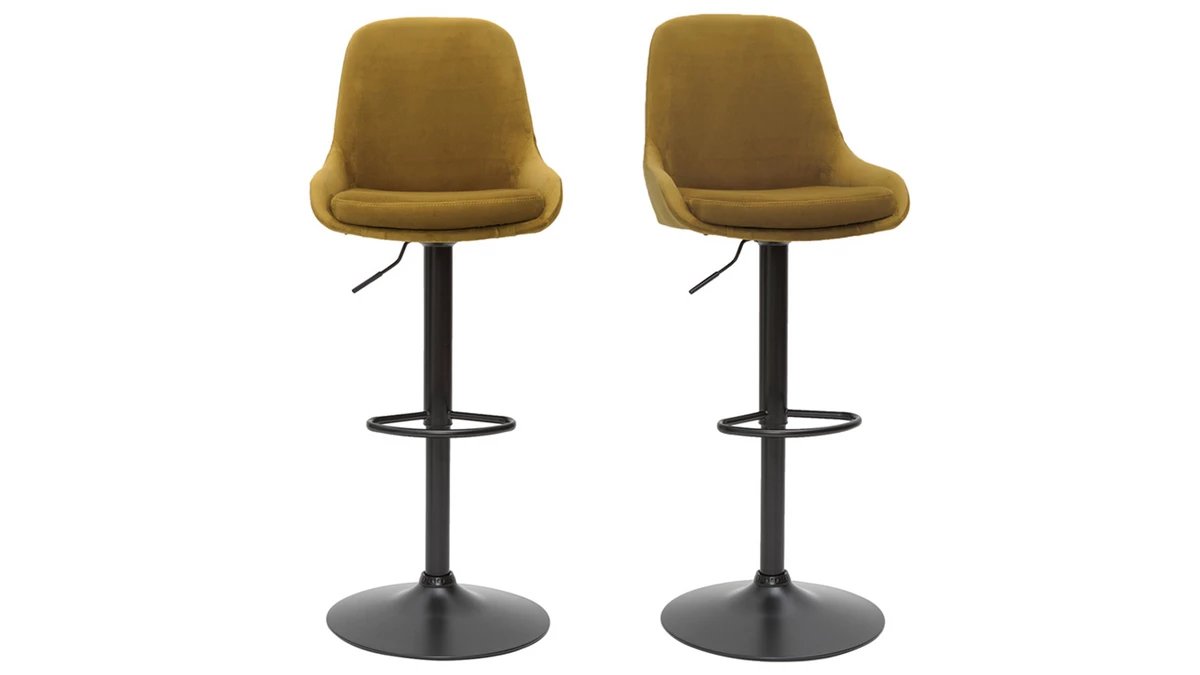 Ces tabourets de bar offrent une grande liberté de mouvement grâce à leur assise pivotante à 360° et leur hauteur réglable. Changez en un tour de main la hauteur d’assise : de 64 à 86 cm.