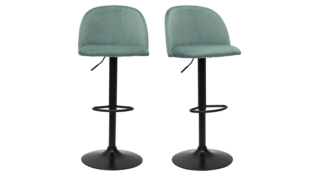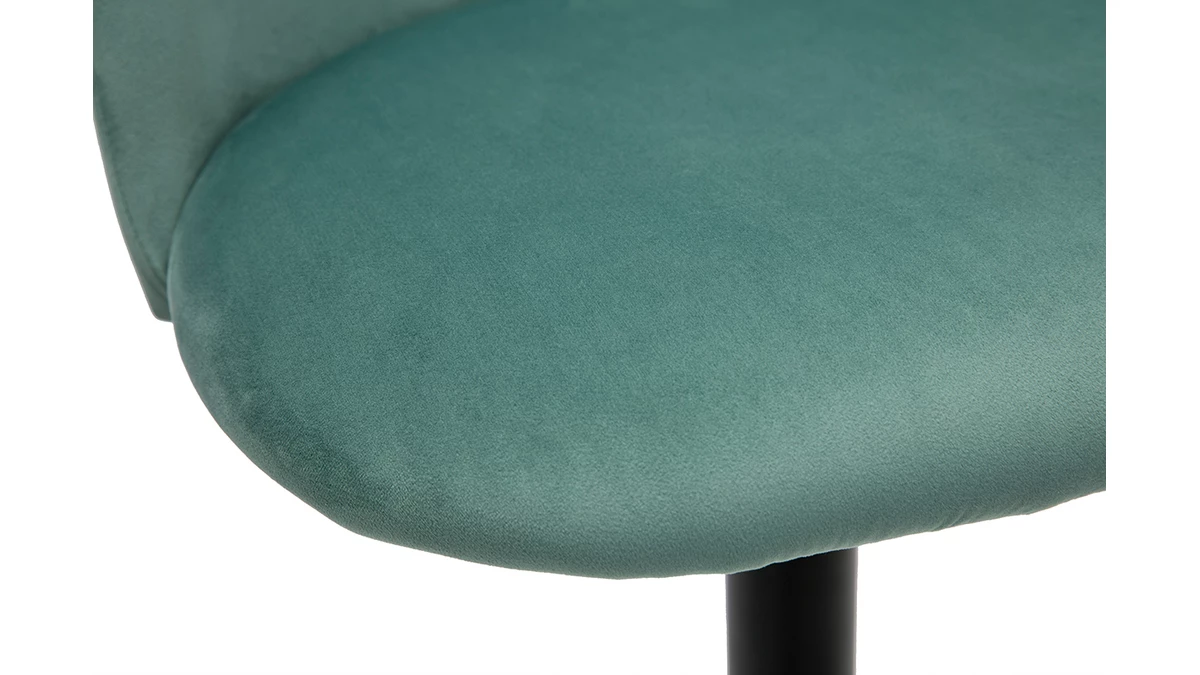 Combinant à la perfection inspiration Art Déco et lignes contemporaines, le piètement en métal noir modernise les courbes au charme vintage du siège. Avec son délicat revêtement, très agréable au toucher, en tissu velours céladon ces chaises de bar ajouteront sans conteste une note chaleureuse à votre pièce de vie. Signature d’un îlot chic et cosy, on imagine parfaitement ces tabourets de bar dans une salle à manger ou une cuisine à la déco rétro chic.