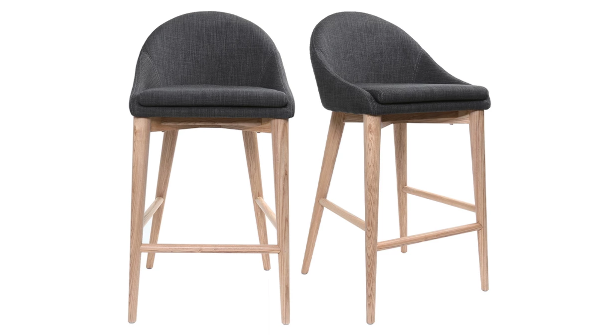Au look nordique, ces tabourets hauts allient une silhouette tout en rondeur à des matériaux ultra chaleureux. Assise arrondie en tissu gris anthracite et pieds fuselés en frêne massif forment la parfaite association. D’une beauté intemporelle, ces tabourets de bar tendance trouveront naturellement leur place autour de votre îlot de cuisine ou de votre table de bar.