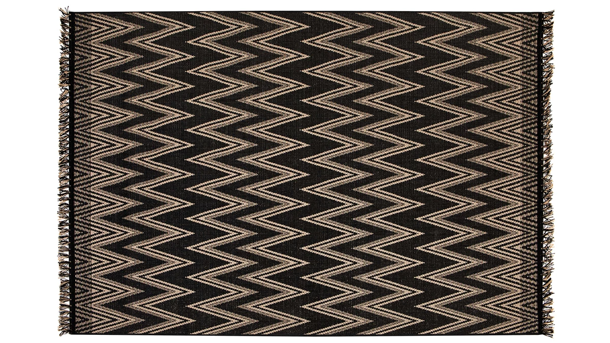 Son charme authentique est réhaussé par son superbe motif à chevrons très graphique. Avec ses couleurs contrastées et ses jolies franges, ce tapis aussi beau que facile à vivre à tout pour séduire.