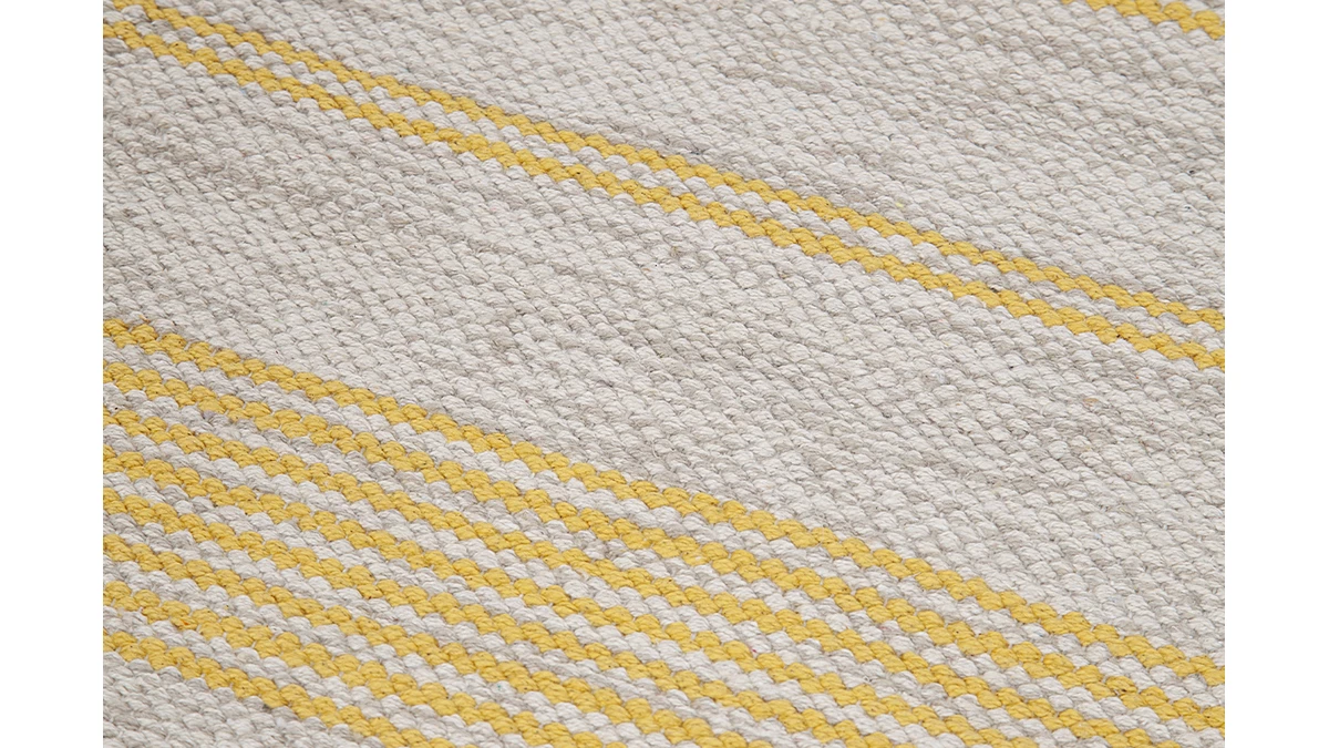Synonyme de douceur et parfait pour réveiller un sol un peu sage, le tapis est un accessoire déco incontournable pour insuffler le renouveau ou valoriser une ambiance. Facile à vivre, CABOURG et sa combinaison de rayures jaunes sur fond beige sera idéal pour dynamiser votre intérieur. Ce petit tapis rectangulaire L50 x L80 cm au motif iconique, rayonnera autant dans une chambre à coucher en descente de lit cocooning, que dans un vestibule pour souligner un meuble de rangement ou délimiter une entrée. De quoi rappeler les beaux jours et l’ambiance bord de mer au quotidien !