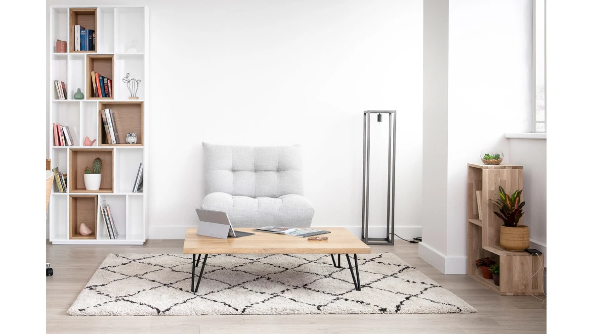 Grâce à ses dimensions (160 x 230 cm), le tapis BERBERE peut être disposé sous un canapé et donner à la pièce un esprit cosy et convivial.