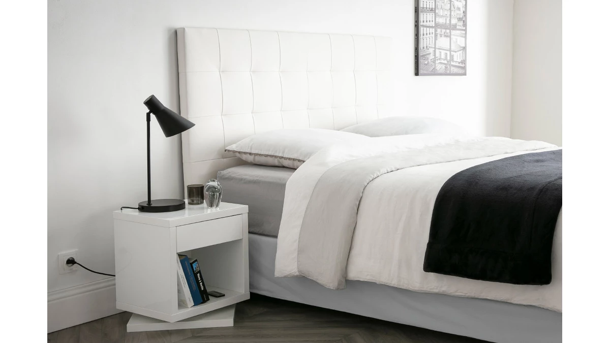 Revêtue de polyuréthane, elle très simple d’entretien et son installation se fait sans encombre : il suffit de glisser la tête de lit entre le lit et le mur.